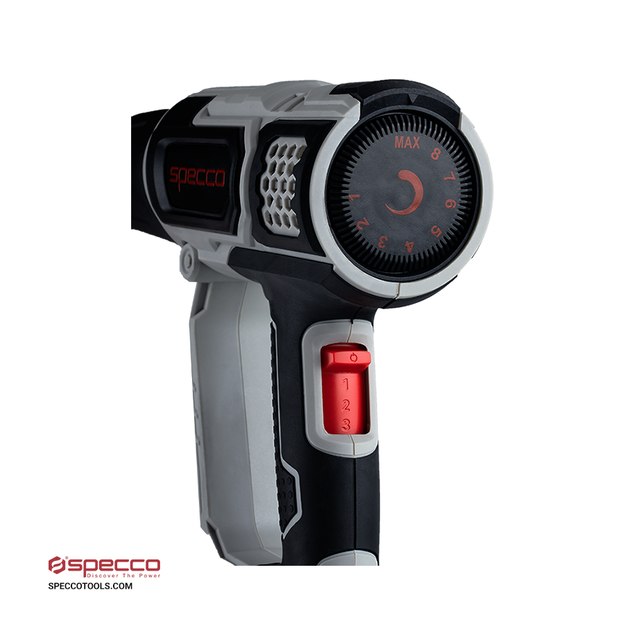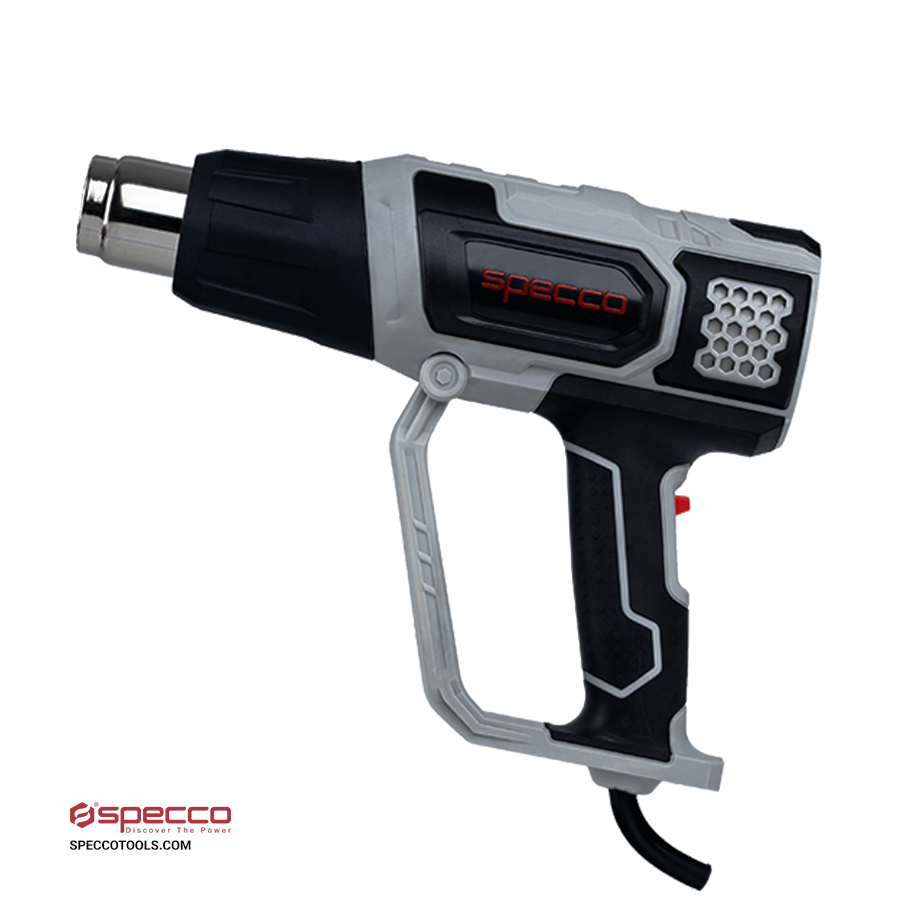 Specco Tools Heat Gun Double Handle 2000W (SP-2041) – High-performance heat gun with a 300-600°C adjustable temperature, 300-500L/min airflow, ergonomic double-handle design, and a three-position switch for enhanced control and precision.