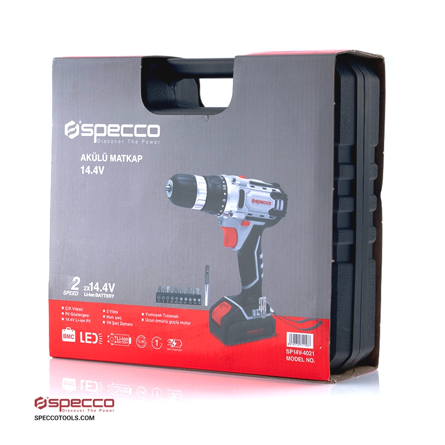 مثقاب الشحن من سبيكو SP14V-4021، بقوة 14.4 فولت مريح لأداء العمل وهو مثقاب يعمل ببطارية شحن لحفر الثقوب وتثبيت البراغي. محرك قوي بقوة 26 نانومتر وبطارية ذات عمر طويل تصلح للاستخدام شبه المحترف ومزود ببطارية أيون ليثيوم بقدرة 1.5 أمبير في الساعة.