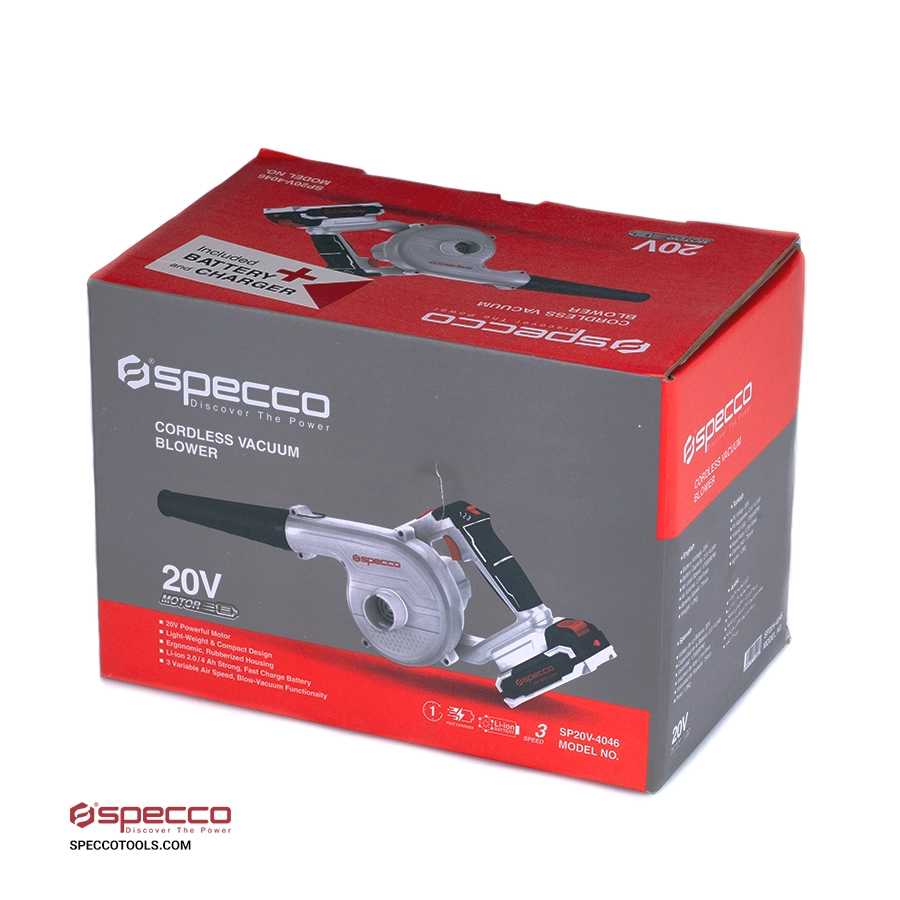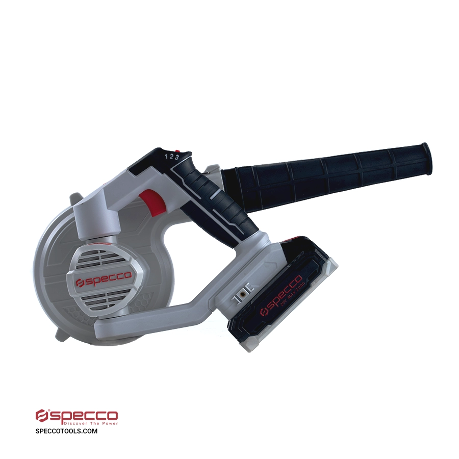 منفاخ هواء من سبيكو SP20v-4046 ، بقوة 20 فولت هو منفاخ يعمل ببطارية شحن مزود بمنصة بقوة 20 فولت من سبيكو بمحرك قوي و3 سرعات قابلة للتعديل وبطارية ذات عمر طويل للاستخدام المهني ومزود ببطارية أيون ليثيوم بقوة 5/4/2 أمبير في الساعة.