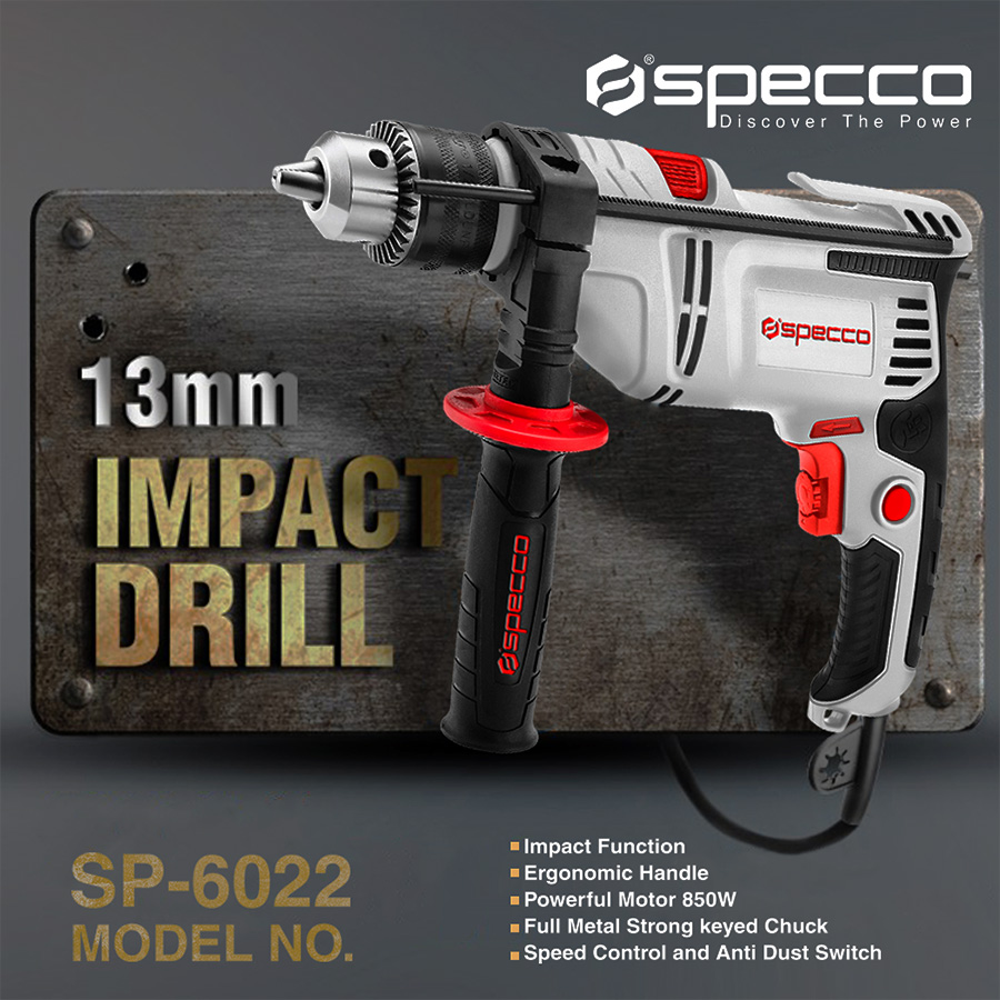 مثقاب سبيكو SP-6022هو الخيار المناسب لكل محترف عندما يتعلق الأمر بعمل ثقوب في الأسطح الكثيفة وقطع العمل. قم بتوصيل هذا المثقاب بالتيار الكهربائي وسيوفر محركه بقوة 850 وات سرعة تصل إلى 3000 دورة في الدقيقة مما يكفي حتى للعمليات الأكثر صعوبة. قم بوضع لُقْمَة المِثْقاب المناسبة وقم بتثبيته في رأس الربط بقطر 13 مليمتر ويمكنك عمل ثقوب بقطر يصل إلى 25 مليمتر في الخشب و 13 مليمتر في المعادن والخرسانة.